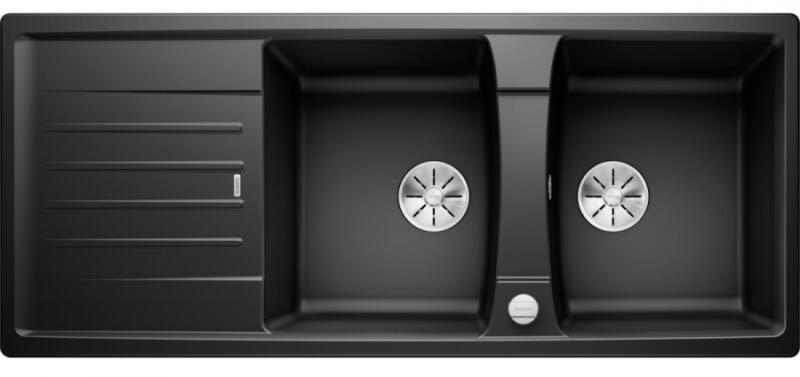 Blanco Lexa 8 S gránit mosogató csepegtető felülettel 116x50 cm és távműködtetővel, fekete 525908 Garancia: 5 év Anyag: gránit Szélesség: 116 cm Mélység: 50 cm Magasság: 19 cm Medence méretei: 34,3 x 43,7 cm Kivitel: forgatható Szín: feketeTervezés Felülről történő beépítés Munkalapszint feletti beépítés Forgatható Minimális szekrényméret: 80 cm Nincs előfurt csaplyuk 2 átüthető csaphelyfurat Kivágási rádiusz: 15 mm Teljes magasság: 32 cmTartozékok Lefolyógarnitúra helytakarékos csővel 2 x 3 ½-os InFino szűrőkosárral és lefolyó-távműködtetővel (tekerőgomb) 1 medencéhezTulajdonságok Karc- és kopásállóság Élelmiszer-, sav- és fényállóság Ütéssel szembeni ellenálló képesség Magas hőállóság (280°C-ig) Foltosodással szembeni ellenálló képességModern mosogató bármilyen konyhai környezetbe. A külső kontúrok és rádiuszok harmonikusan illeszkednek egymáshoz. Nagyvonalúan méretezett, szimmetrikus medencék - ideális a tökéletes főzési élményhez. Elegáns, nagyfelületű csepegtető, folyamatos átmenettel a medencerészbe. Gazdag felszereltség lefolyó-távműködtetővel és InFino szűrőkosárral. Elegáns illeszkedés és könnyű tisztíthatóság. Elforgatva is beépíthető.