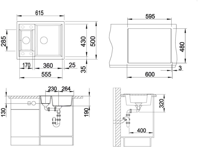 Blanco Metra 6 gránit mosogató 61, 5x50 cm, lefolyógarnitúrával, fekete 525922 (525922)