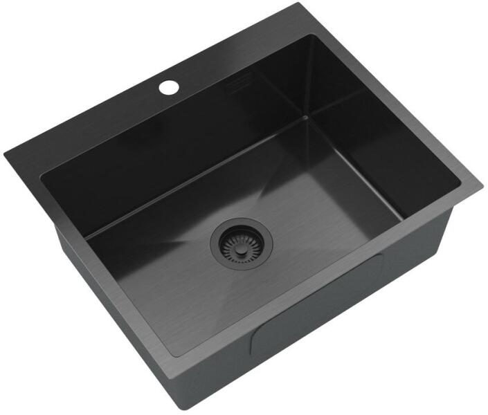 Lavre S6050 Egymedencés Szálcsiszolt Acél Mosogató - Fekete, 600x500 mm (S6050-BK)