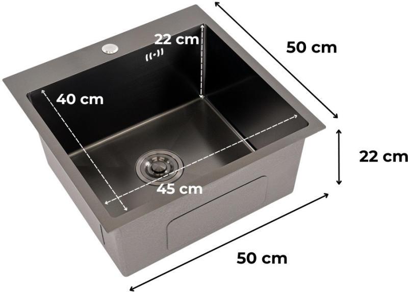 A 21 cm mély tálca és a 45x40 cm-es medenceméret lehetővé teszi a nagyobb edények, serpenyők kényelmes mosását, míg az 50x50 cm-es teljes méret ideális kisebb és nagyobb konyhákhoz egyaránt.