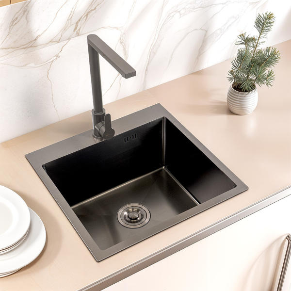 A 304-es prémium rozsdamentes acélból készült mosogató 3+0,8 mm-es vastagsága garantálja a hosszú élettartamot és az ellenállóságot a mindennapi használat során. A fekete nano bevonat nemcsak elegáns, hanem taszítja a szennyeződéseket és az olajfoltokat, így kevesebb időt kell a tisztításra fordítani.