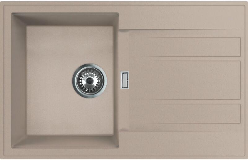 A Miló márka Piatto beépíthető mosogatója tökéletesen illik a modern konyhákba. Négyszögletes alakú, mérete 78 cm x 50 cm x 21,5 cm (Ma x Sz x Mé). A medence mérete 34 cm x 21,5 cm (Sz x Mé). Ráadásul a mosogató egy edényszárító felülettel is rendelkezik, amelyen elhelyezhetők az elmosott edények. Kiváló minőségét a gránit kompozit alapanyagnak köszönheti. Ennek révén a beépíthető mosogató strapabíró, valamint hőálló. Megjelenését a homokbézs színvilág teszi vonzóvá. Fontos, hogy a gránit mosogatók tisztításához ne használjon maró tulajdonságú vegyi tisztítószereket, például klórt vagy erősen koptató hatású összetevőket tartalmazó súrolószereket. A mosogató tökéletes ápolásához és tisztításához a Miló tisztító- és ápolószert ajánljuk, amelyet külön vásárolhat meg. Gyors és egyszerű beszerelés A reverzibilis mosogató beépítése egyszerűen elvégezhető a csomag részét képező rögzítőkapcsokkal. Ez a mosogató felülről beépíthető. A csomag tartalma: Piatto beépíthető mosogató - Le- és túlfolyó garnitúrával - Rögzítőkapcsokkal