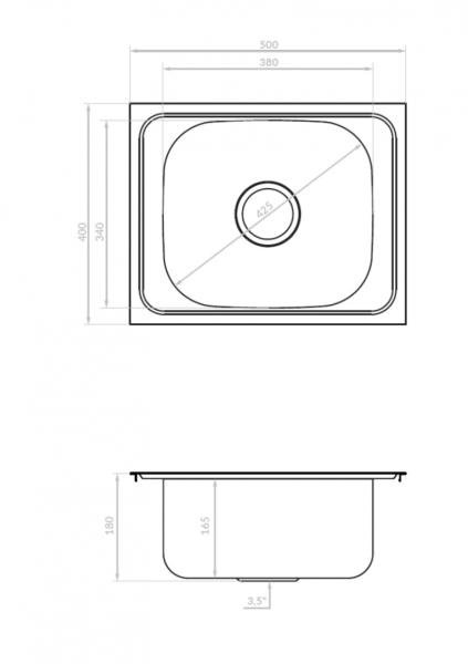 Orion acél mosogató- 1-tálcás- külső méretek: 400x500x150 mm- a tál méretei: 330x400x150 mm- szifon mellékelve- lefolyó: 2"- kamra mélysége: 150 mm- szekrényhez: 50 cm- megfordítható- ellenáll a termikus sokknak- foltálló- túlfolyóval- kivitel: sima
