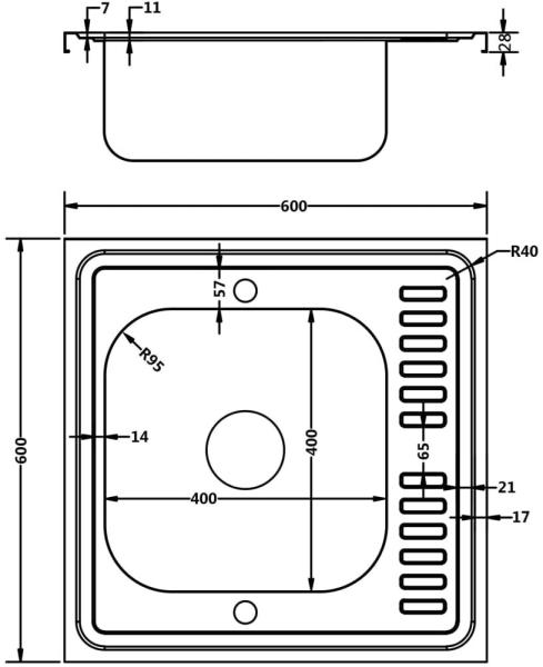 • Mosogatómedence mérete: 400 x 400 mm (Ho x Szé)