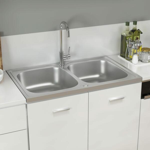 vidaXL ezüst rozsdamentes acél dupla konyhamosogató 800 x 500 x 155 mm (147234)